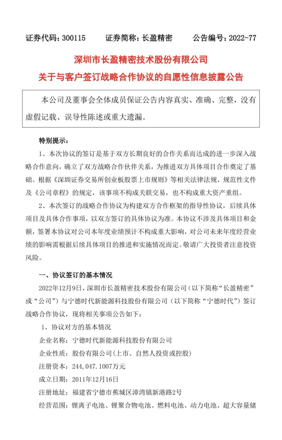 奋楫新征程!长盈精密与宁德时代达成战略合作!