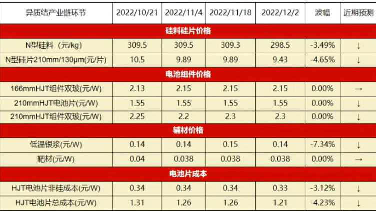 近期N型异质结产业链价格走势及预测