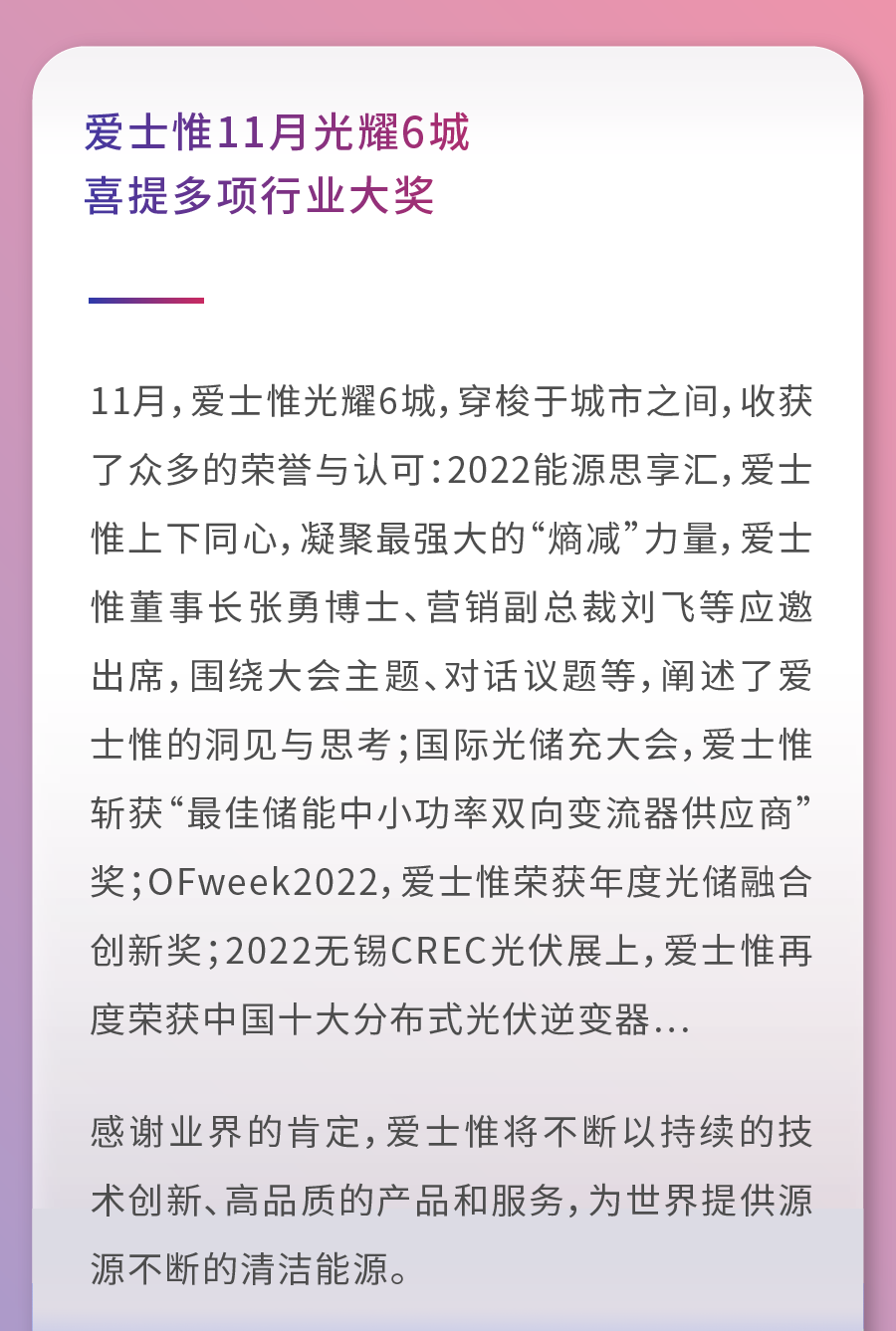 逐光追梦享绿色!三分钟读完爱士惟这一季