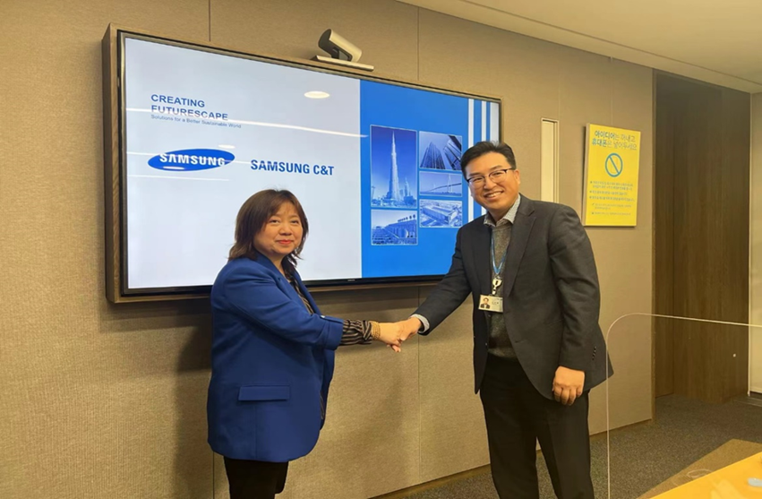 2022年12月2日,天合光能产品BG总裁Helena Li访问韩国三星物产总部,与副总裁Kim Juyoul商谈战略合作
