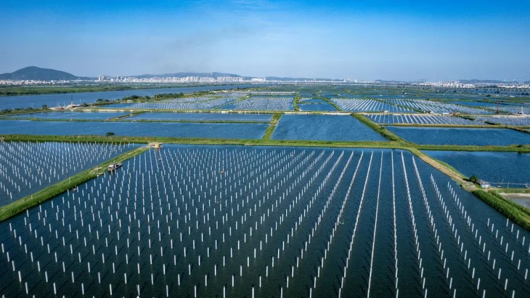 数月后,在汕头渔业养殖区内将见到一片片巨幅的光伏蓝,与鱼塘水面交相辉映,形成一道“渔舟唱绿电”的别样风景。