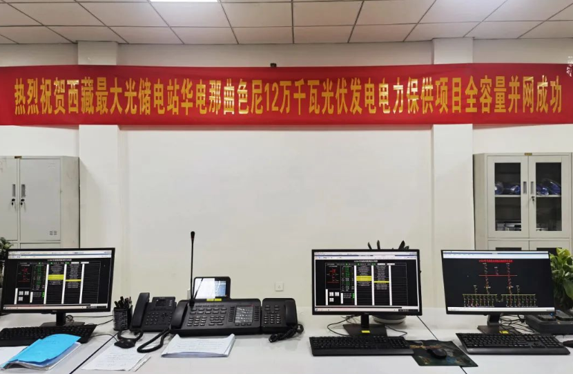 2022年12月25日11时30分,随着最后一组逆变器直流开关闭合,西藏“十四五”期间最大光伏保供项目—华电那曲色尼区12万千瓦光伏电站成功实现一次性全容量并网发电。