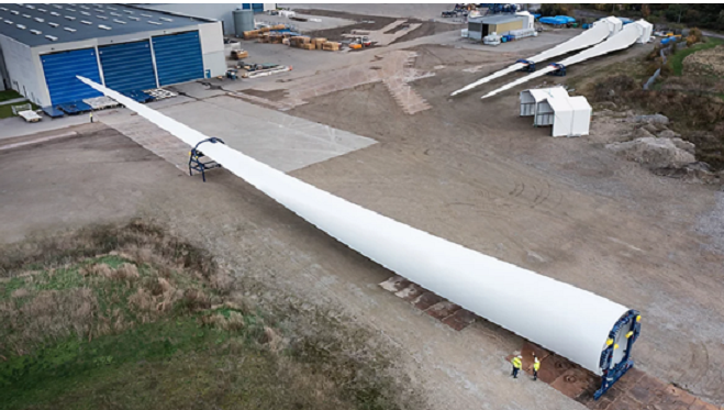 2022年11月,首支115.5米超长叶片从维斯塔斯位于丹麦Nakskov的工厂出厂亮相。