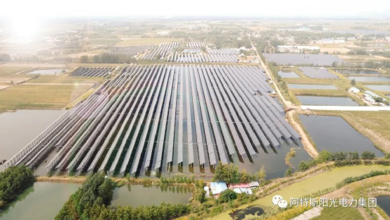 该项目将原来塌陷较深的采煤塌陷区域改造为渔业养殖基地,并在鱼塘上架设阿特斯光伏组件,建成集发电、养殖于一体的大型集中式光伏电站,促进土地资源节约利用、项目效益整体提高、乡村振兴提速发展。