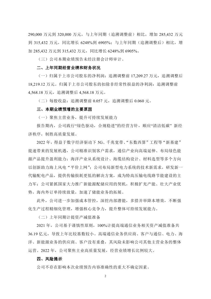 归母净利润30-33亿元!中天科技预计2022全年净利同比增长1643%到1818%!
