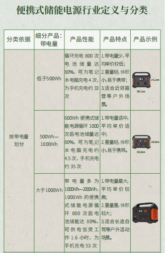值得关注的是,作为便携储能的核心部件,根据电池包不同的带电量,可将便携储能设备分为以下三大类,并适用于不同的应用场景。