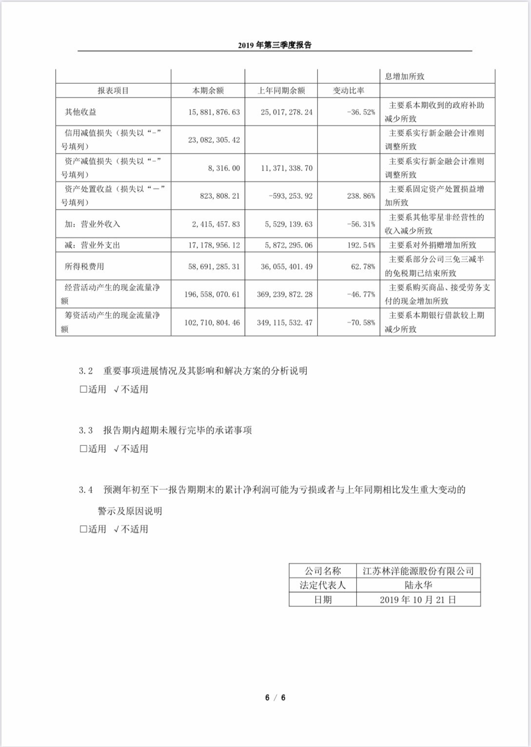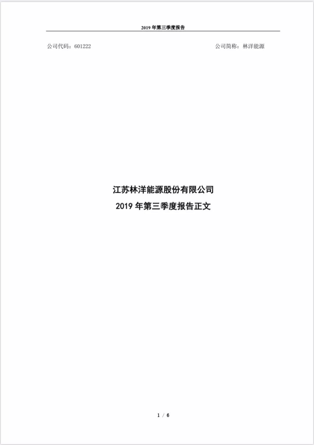 2019年10月21日 【江苏林洋能源股份有限公司 2019年第三季度报告正文】