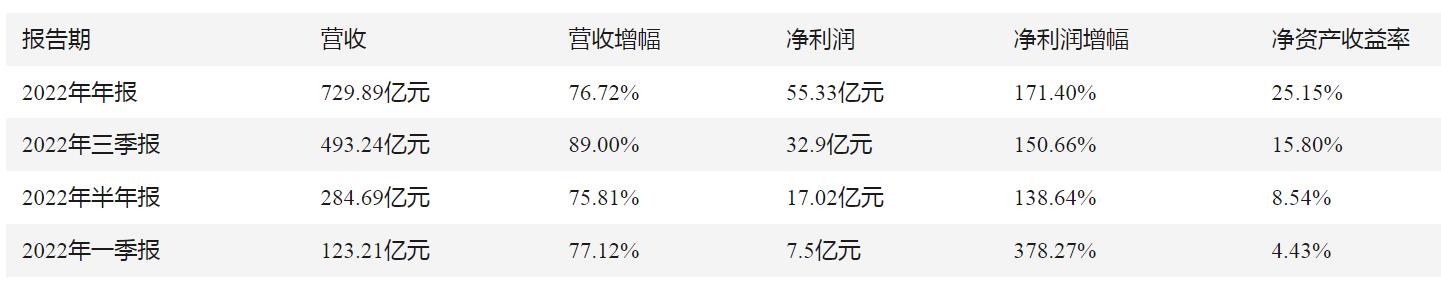据报道,晶澳科技2023年3月22日晚间发布2022年年报称,2022年归属于母公司所有者的净利润55.33亿元,同比增长171.4%;营业收入729.89亿元,同比增长76.72%;基本每股收益2.4元,同比增长160.87%。