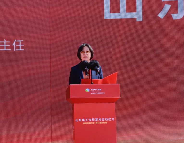 贾瑞霭代表威海市委、市人大、市政府,对项目的启动表示热烈的祝贺。她指出,近年来国家启动布局海上风电产业,山东省规划半岛千万千瓦级海上风电基地,为威海风电产业发展带来巨大机遇。山东电工作为国内最大的电力装备及整体解决方案供应商之一,拥有先进的技术研发能力、完善的产品质量保证体系、成熟的产品配套和营销能力,与威海有着巨大的合作潜力和广阔的合作空间。山东电工海缆基地项目落地威海,既为山东电工进一步做大做优做强提供新的增长点,也为威海加快高质量发展蓄积充沛动能。希望双方继续保持密切沟通,深化各领域交流合作,将更多投资项目放在威海、放在经开区。威海市各级各部门将继续本着“企业所需、威海所能”原则,一如既往帮助企业解决好政策、技术、人才、用工等各方面需求,为企业发展创造良好环境,一起创造美好的明天。