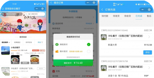 图:打通企业应用后,即使订外卖也可用微卡支付