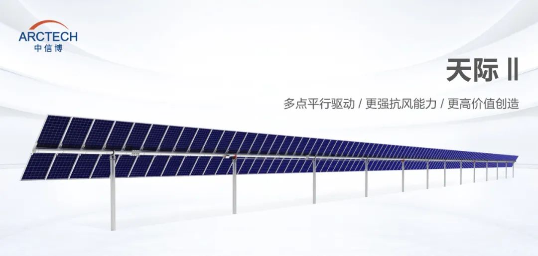 中信博天际II采用了世界领先的多点平行驱动技术,相较于传统单点驱动跟踪支架,天际Ⅱ更多的固定点使其在所有倾斜角度都具有更高的临界风速,并且大风保护角度从大角度变为0度,最大可减少300%的组件风压,大大降低了组件隐裂风险。天际II还加持了最新一代人工智能光伏跟踪解决方案,并由此带来4%甚至更大的发电量提升。
