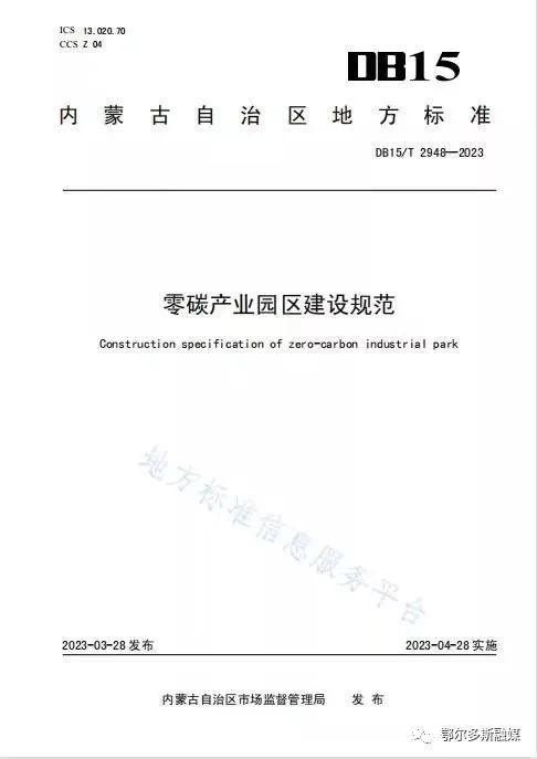 近日,由鄂尔多斯零碳产业园龙头企业远景能源有限公司参与制定的《零碳产业园区建设规范》内蒙古地方标准正式发布,该标准将于2023年4月28日起正式实施。