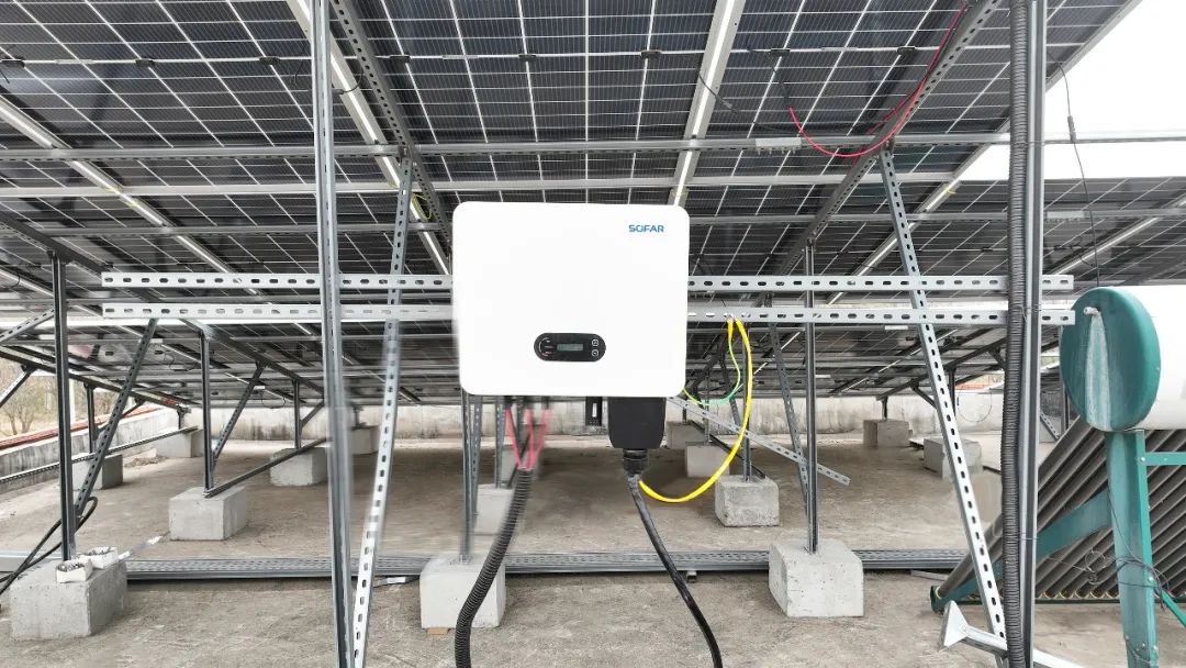 项目采用的SOFAR 30K-50KTLC-G3系列户用光伏逆变器,最大转换效率达98.8%,采用多路MPPT设计,组串最大电流20A,适用大功率组件;支持直流超配1.5倍,具备1.1倍长期过载能力,可有效提升发电量和电站收益;整机防护等级达IP65,交直流二级防雷设计,确保设备安全可靠。