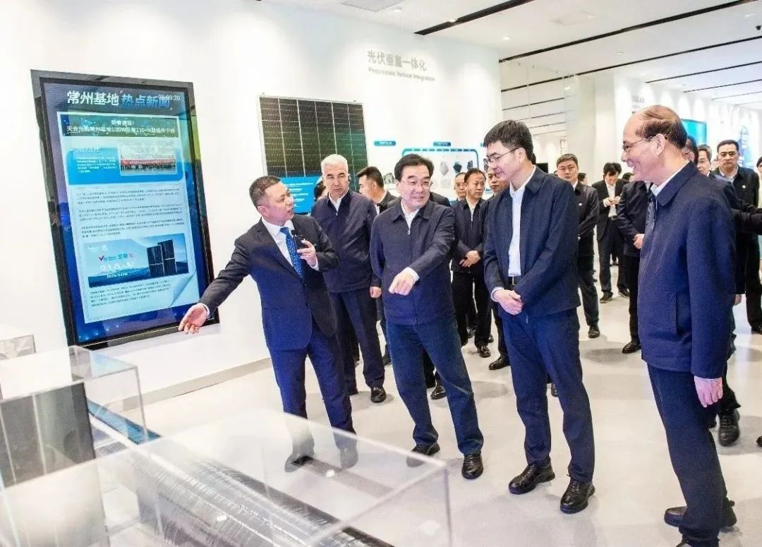 在天合光能梦想与创新展示中心,代表团一行详细了解公司产业布局、技术创新、青海基地建设进度等情况。近年来,天合光能积极响应青海建设国家清洁能源产业高地和苏青协作的号召,充分发挥企业业务优势和利用青海的自然资源禀赋,持续加大在青海投资,建设全产业链光伏生产制造基地和源网荷储零碳产业园。信长星、陈刚、吴晓军给予高度认可,肯定天合光能成为苏青协作乃至东西部协作的样板。希望天合光能牵头推动举办的光伏产业生态创新大会取得圆满成功,为江苏与青海深度协作,共同建设光伏产业创新生态做出贡献。