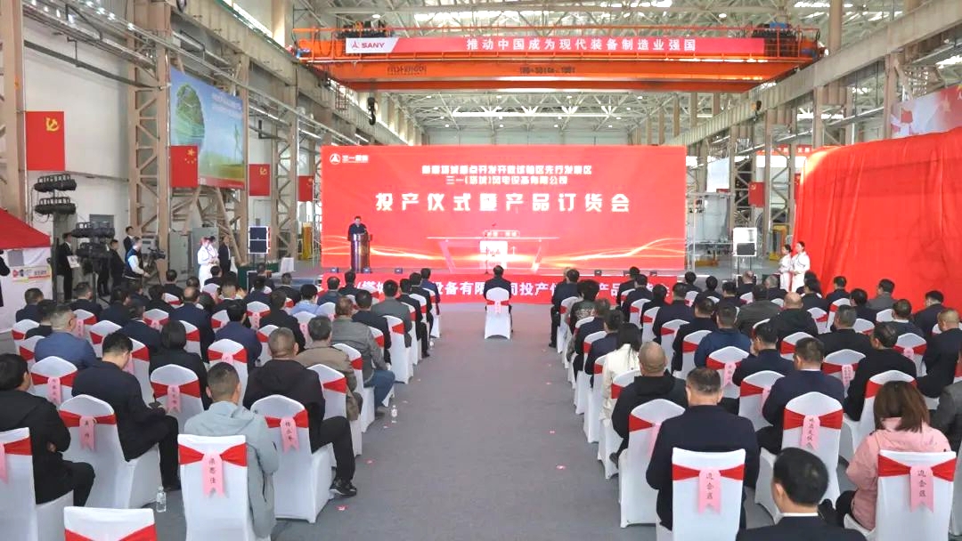 4月25日,三一(塔城)风电设备有限公司举行投产仪式暨产品订货会。新疆维吾尔自治区发展改革委一带一路创新试验处副处长刘勇,塔城地委书记魏建国,塔城地委副书记、行署专员阿依丁·托留汗,国家电投集团新疆能源化工有限责任公司党委书记、董事长章建康,三一重能董事长周福贵,三一重能副总经理余梁为,三一重能副总经理、首席数字官彭旭,新疆自治区、塔城地委及行署、三一重能客户代表等相关领导出席并见证这一重要时刻。本次活动由塔城地委副书记赵曦峰主持。此次活动标志着三一重能又一主机及叶片制造基地落地投产。