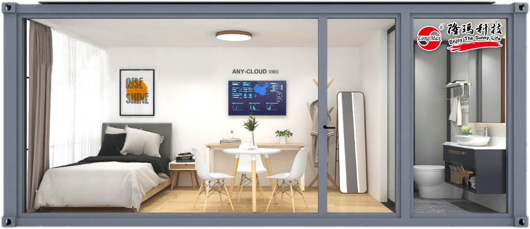 隆玛科技为该项目提供光储一体智慧云能仓,作为运维人员的生活舱和储藏室,舱内包括光伏组件、逆变器、储能电池等一套系统,满足客户不少于一天的用电需求。舱内根据客户要求定制化装饰,包含床、空调、水池和水箱等生活设施,满足客户的基本生活需求。