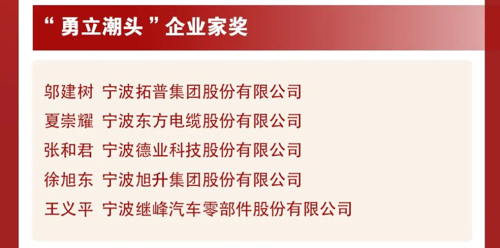 德业股份:张和君董事长荣膺2023北仑区经济高质量发展大会“勇立潮头企业家奖”