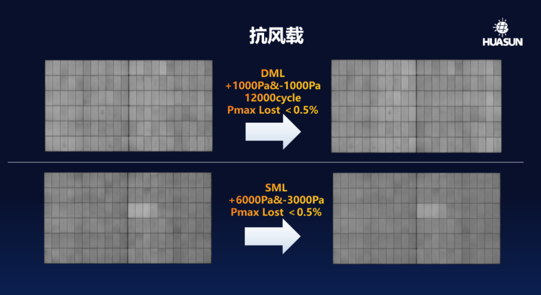 以丁基胶技术为例,丁基胶水透不到硅胶的1%,实测华晟双玻丁基胶封装方案抗水汽渗透能力相对传统封装提升10倍以上。此外,半棒切割电池无损伤技术使得异质结组件的抗热斑表现显著提高,具备低反向漏电、高反向击穿等优势,20主栅超密互联技术则有效避免组件隐裂生成和扩展。