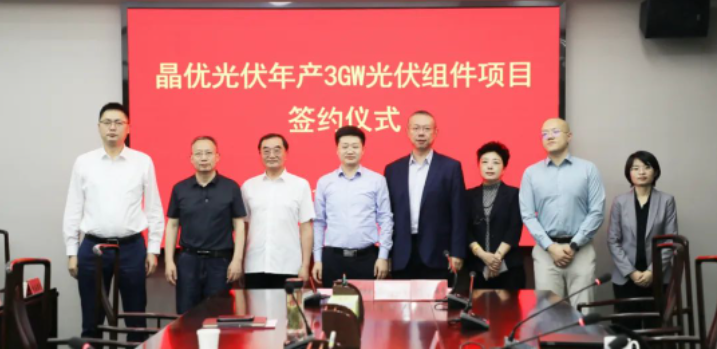 5月20日,晶优光伏集团再添一座新基地,年产3GW光伏组件项目签约仪式顺利举行,这是晶优光伏集团第六个制造基地,于今日正式落地安徽省安庆市岳西县。