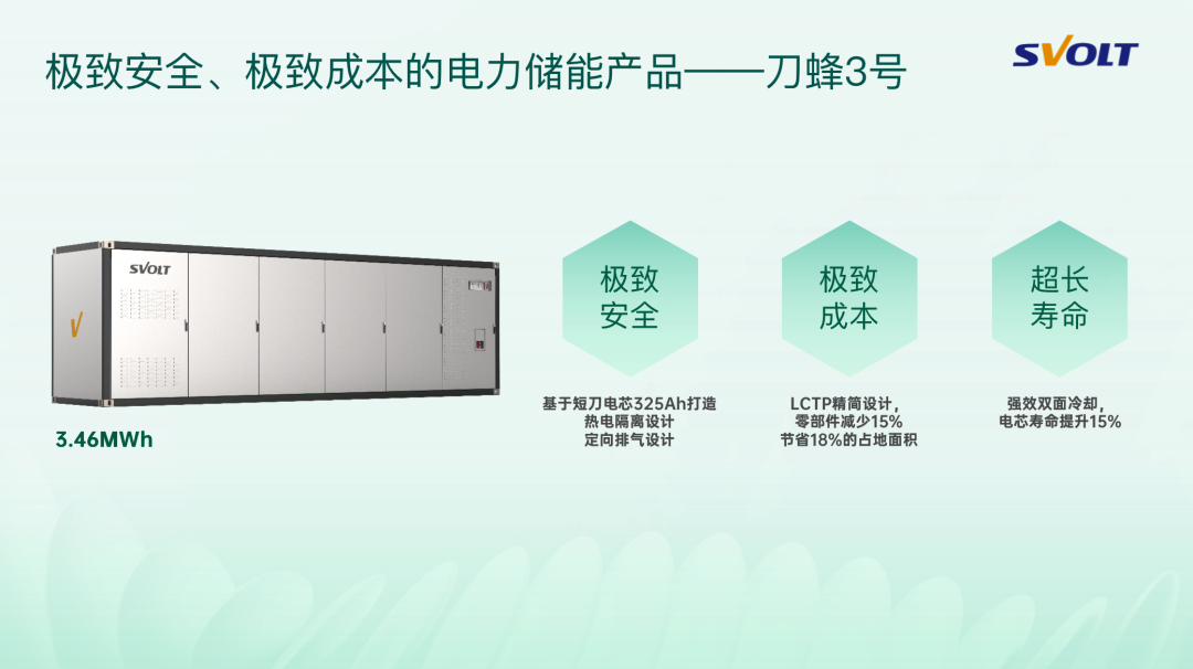 基于这三款短刀储能电芯,蜂巢能源还发布了三款代表性储能系统,其中包含厚度仅为66mm的全球超薄家庭储能新品、99KWh工商储能电柜、325Ah液冷电力储能。