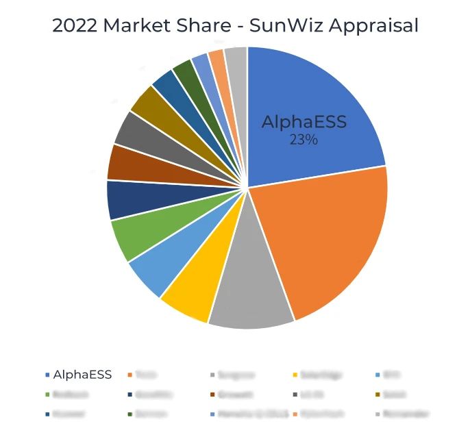 根据SunWiz统计结果,2022年度,沃太能源在澳大利亚储能领域中占据了令人瞩目的市场份额,高达23%!这一数字彰显着沃太能源在可再生能源行业取得的惊人成绩,同时也传达着市场对其优质产品和专业服务的高度认可。