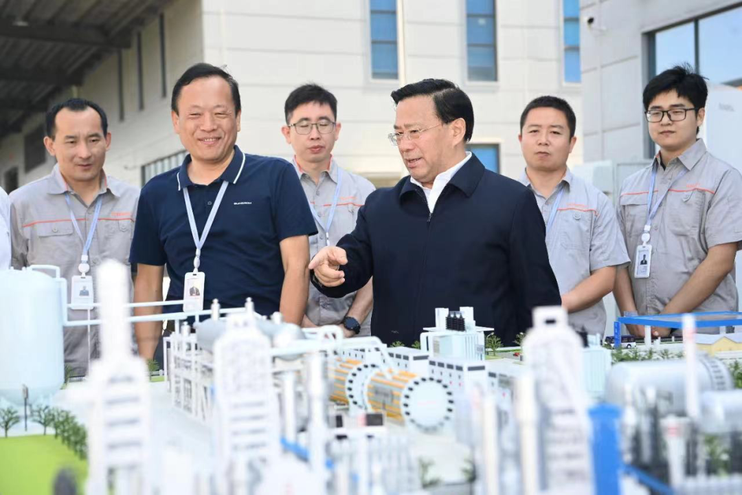 在阳光电源党委书记张友权的引导下,韩俊听取了公司发展历程、业务布局介绍,详细了解光伏逆变器、储能系统、可再生能源柔性制氢系统等应用情况。韩俊对阳光电源“合肥制造、全球销售”模式给予肯定,高度认可公司在清洁能源领域取得的发展成果和全球领先地位,勉励公司加大研发投入和技术储备,进一步开拓国内外市场,持续降本增效,勇当行业龙头。