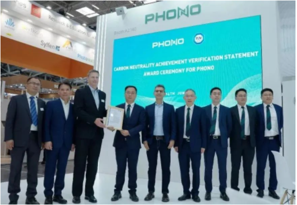 德国/慕尼黑 6月14日,苏美达能源旗下辉伦太阳能(以下简称“苏美达辉伦”)于德国慕尼黑2023 Intersolar期间获颁TÜV南德意志集团(以下简称“TÜV南德”)碳中和达成核查声明与温室气体核查声明。TÜV南德商业产品全球负责人、高级副总裁Wolfgang Hübl,TÜV南德北亚区首席财务长李仲衡,TÜV南德意志大中华集团商业产品服务部高级副总裁Robert Puto ,TÜV南德意志大中华集团智慧能源副总裁兼南德新能源汽车检测(江苏)有限公司总经理许海亮,苏美达能源党总支书记、总经理郭宏伟,苏美达能源副总经理赵兴国及苏美达辉伦合作伙伴共同出席并见证了该声明的颁发仪式。