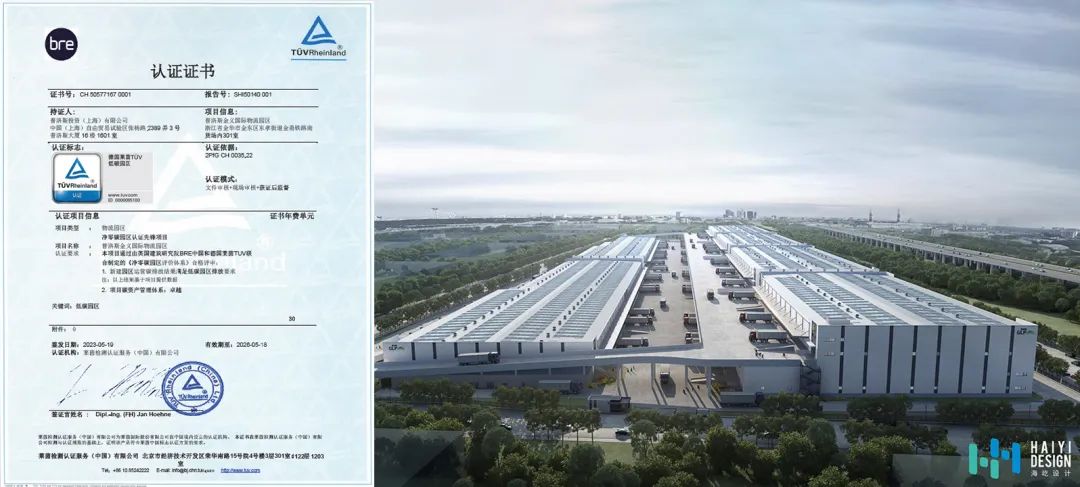 近期,普洛斯金义国际物流园通过了德国莱茵TÜV与英国建筑研究院(BRE)联合制定的“净零碳园区评价体系”评审,获得国内首个“净零碳园区评价”低碳园区“卓越级”认证。