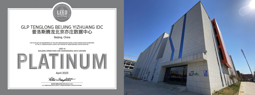 普洛斯腾龙北京亦庄数据中心已获得美国绿色建筑评估标准体系LEED v4 O+M(既有建筑运营与维护)铂金级认证