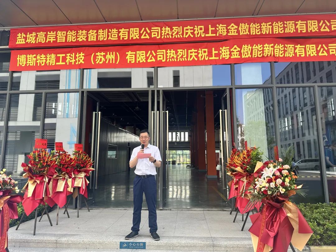 7月12日,占地超6000平米的傲普能源科技金山工厂正式开业。上海市金山区亭林镇副镇长袁振、金地威新产业副总经理兼上海公司总经理张庆军、联盛新能源集团CEO郝鹏、傲普能源科总经理姜文杰、傲普储能工厂总监申树建出席开业典礼,为新厂剪彩。