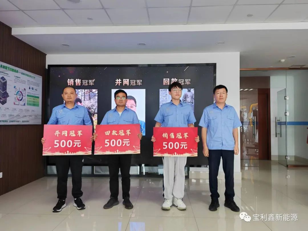 会议最后,公司表彰了上半年度“销售冠军、并网冠军、回款冠军”并对各专项奖励进行了发放。