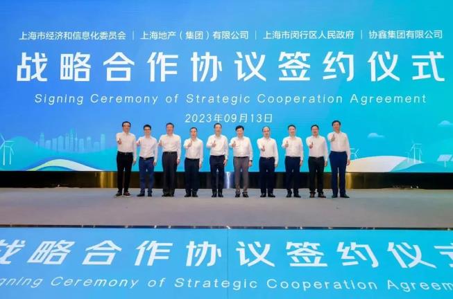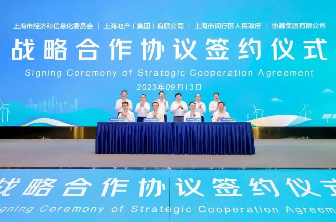 9月13日,上海市经济和信息化委员会、上海地产(集团)有限公司、闵行区人民政府与协鑫集团有限公司在苏州正式签署战略合作协议。虹桥国际中央商务区党组书记、常务副主任鲍炳章,闵行区委书记陈宇剑,上海市经信委副主任刘平,上海地产(集团)有限公司副总裁王斌,协鑫集团董事长朱共山等领导出席并讲话,同时共同见证签约仪式。