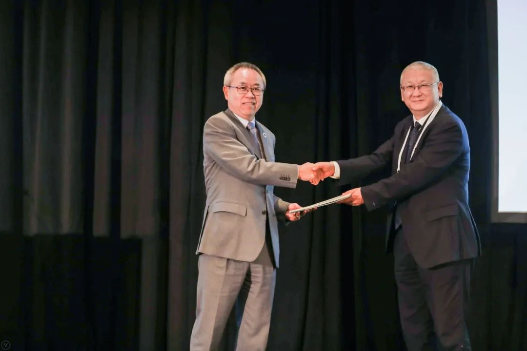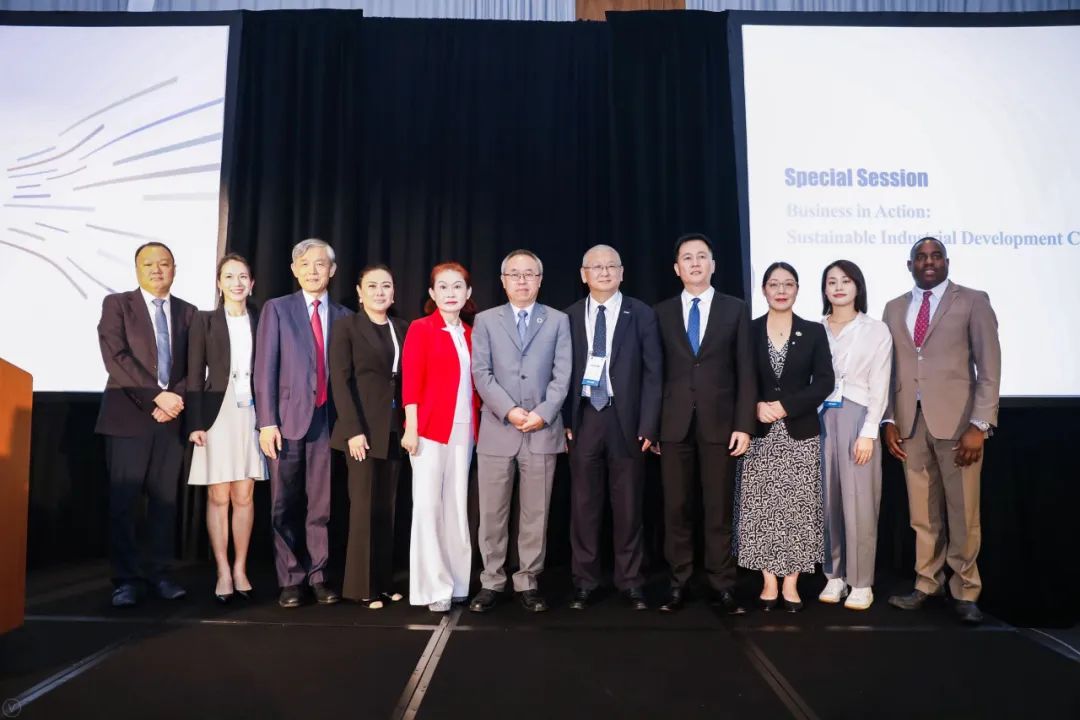李振国作为企业家代表向联合国副秘书长李军华递送了由中国企业共同签署的“工商界在行动-可持续产业发展共识”倡议和优秀案例。