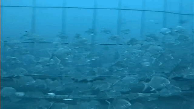 明阳风渔一体化智能装备导管架网箱内鱼情