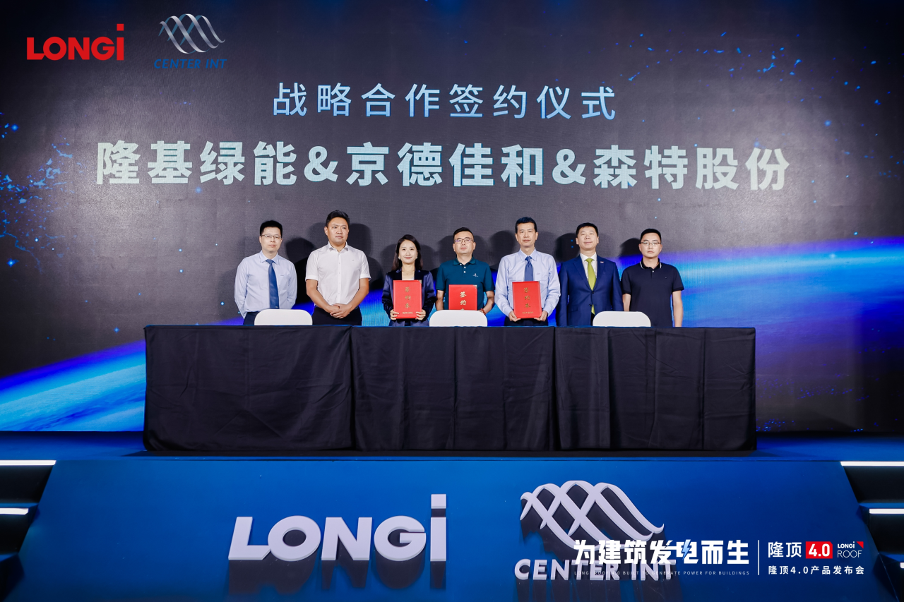 9月23日,隆基绿能携手森特股份在北京发布以“为建筑发电而生”为主题的全新一代建筑光伏一体化(BIPV)产品—隆顶4.0。