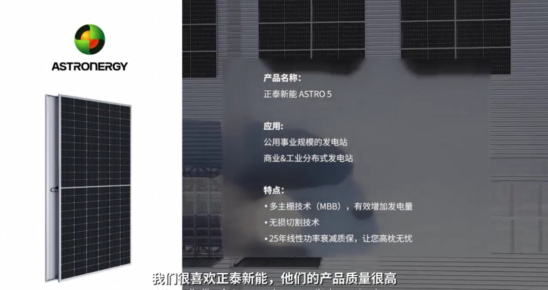 Total Tools业务运营经理Ben Brown对正泰新能产品表达了高度赞扬。他表示,ASTRO 5系列拥有高功率、高效率、高兼容性、高品质、低BOS成本和LCOE等五大核心优势,同时具备恰到好处的版型设计与适中的重量,安装便捷,并网后每年预计为Total Tools节约20000美元。
