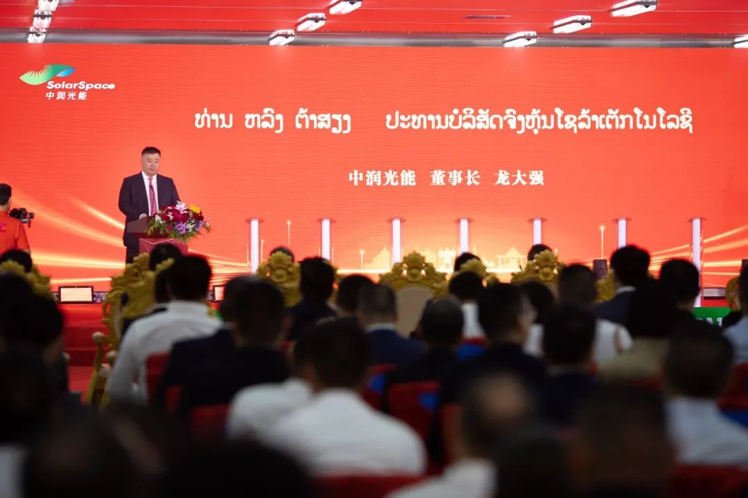 中润集团董事长龙大强在致辞中表示,一期5GW电池项目的建成投产,离不开老挝各级政府及开发区领导的大力支持,更饱含了中润光能近千名中老员工的心血和汗水。从2023年2月举行开工典礼到今天实现全线贯通,仅用了7个多月的时间。这期间,中润项目全体工作人员战胜了建设初期物流不畅,雨中施工难度大等诸多困难,科学设计方案、精心组织施工、多方协调配合,按计划圆满完成了既定目标任务,创下了中润光能境外工程高质量施工的记录。