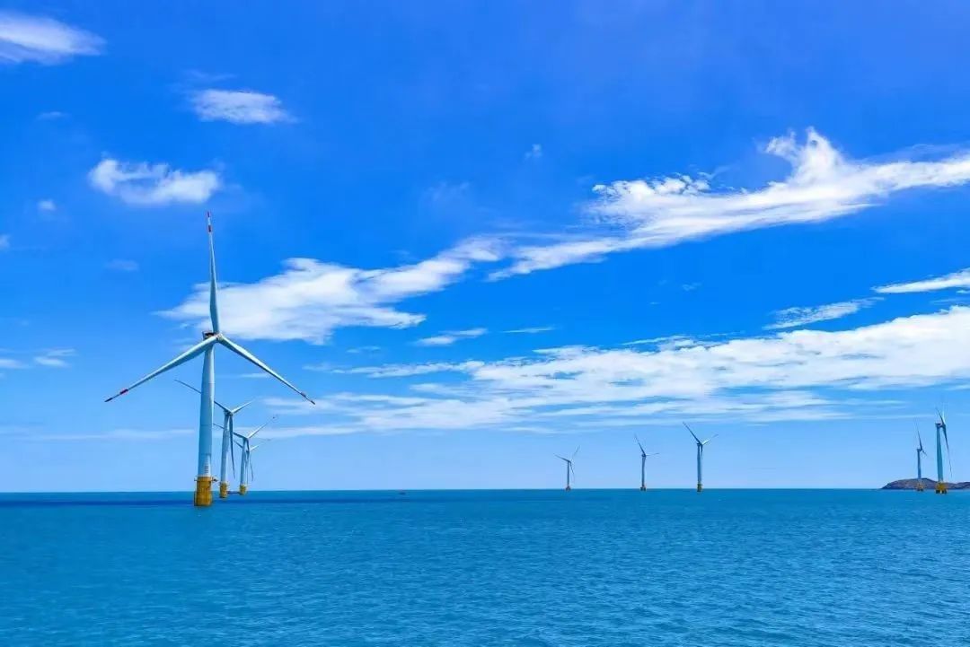 项目2021年9月首台机组吊装成功;2021年12月首台机组成功并网发电;2022年12月超额完成大唐公司年度建设任务目标;2023年6月全部机组并网发电。一个个节点的完成,是项目团队精细策划、团结协作,克服海域地形复杂、风机场址风大涌高、船机设备资源紧张等不利条件的结果。他们充分利用窗口期,扎实推进项目建设投产,仅用不到三个月的时间,实现了从首台风机吊装到并网发电。