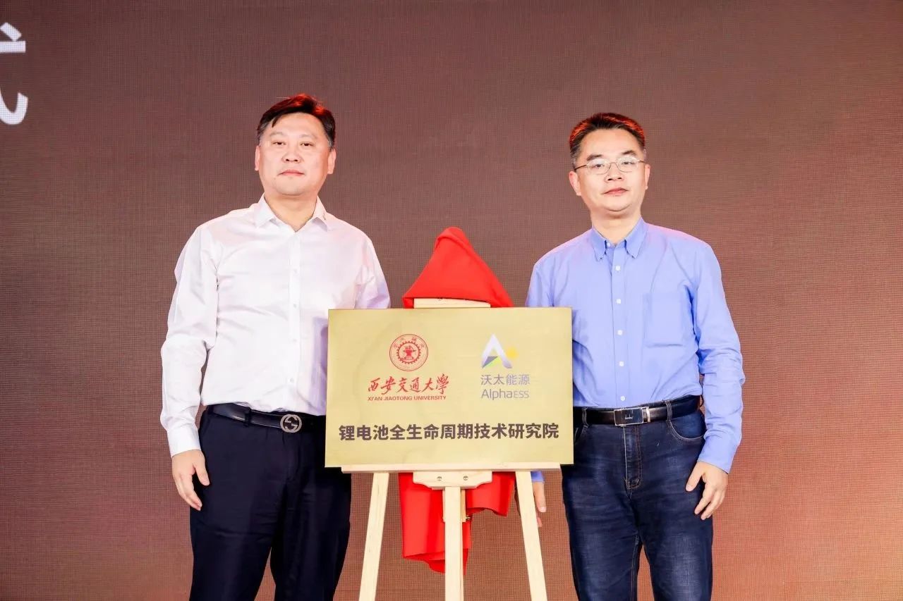 紧接着,现场举行了“沃太能源-天津大学储能系统安全联合研究中心”、 “沃太能源-西安交大锂电池全生命周期技术研究院”、“沃太能源博爱基金”三个项目的挂牌仪式。这三个项目代表着沃太能源在技术研发、校企合作、社会责任等领域迈出的重要步伐,彰显公司在新十年开启新华章的决心和信心,同时展现了沃太能源对创新和可持续发展的坚定承诺。