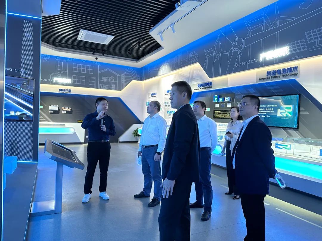 在瑞浦兰钧数字化展厅中,张志明总监向王忠民书记介绍了公司发展概况、产品应用模式、企业布局规划等方面内容。瑞浦兰钧为避免“卡脖子”问题,依托于青山实业丰富的矿产资源以及原材料-正极材料-锂电池的全产业链发展,持续创新核心技术,不断增强综合竞争力,为打造高质量、高一致性产品奠定重要基础。目前,瑞浦兰钧自主研发的问顶电池采用一体化焊接技术,在相同体积的前提下,进一步提升电池容量,将电芯体积能量密度比做到行业顶尖。