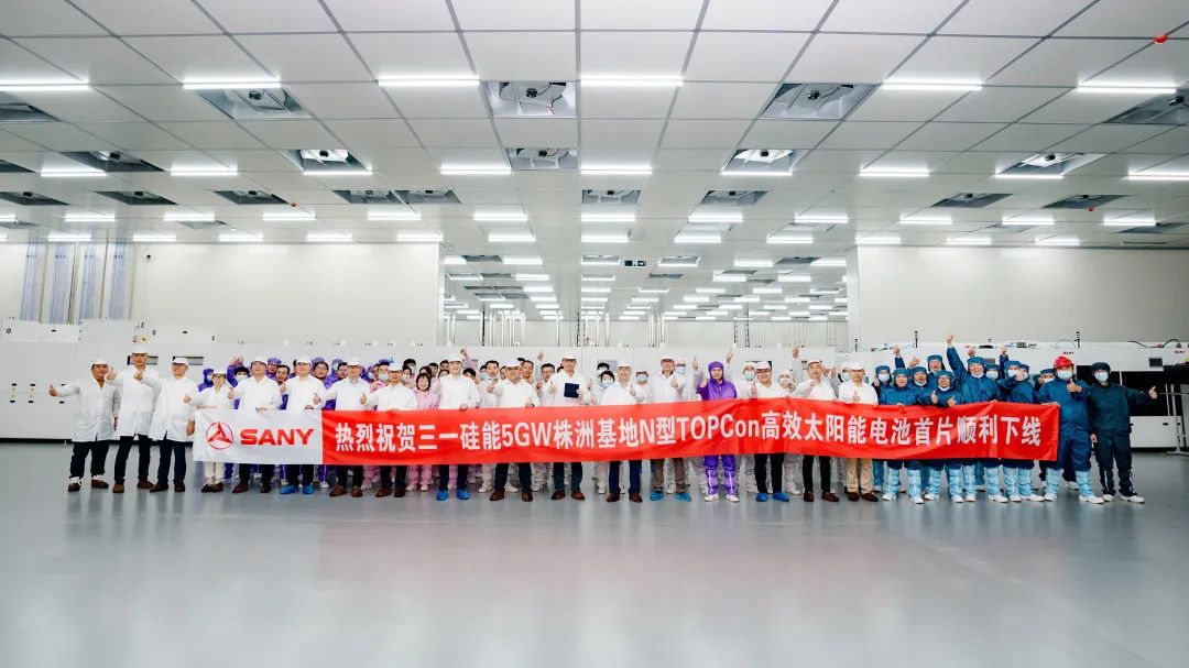 捷报! 三一硅能5GW株洲基地首片N型TOPCon高效太阳能电池顺利下线