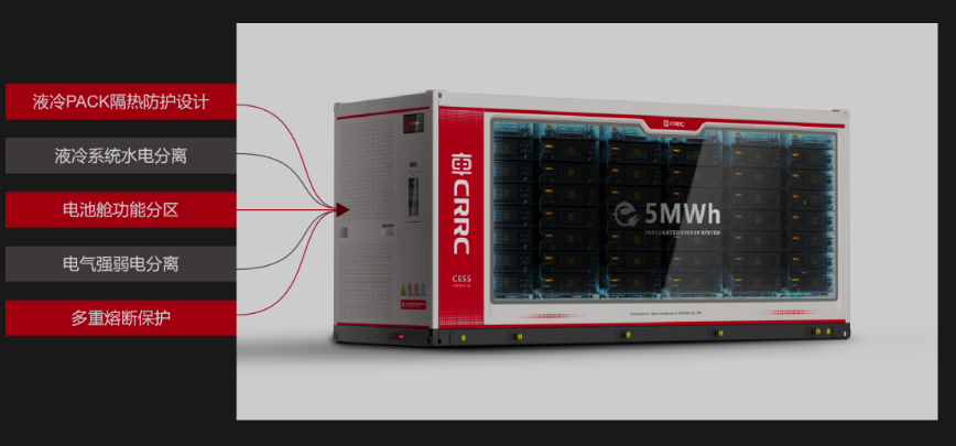 在安全性方面,中车储能系统从电芯管控、精准控温、电气安全、智能消防等几方面实现高安全集成设计。