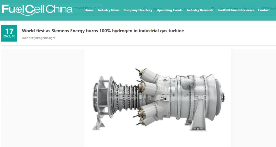 全球首例!西门子能源公司成功运行100%可再生氢工业燃气轮机