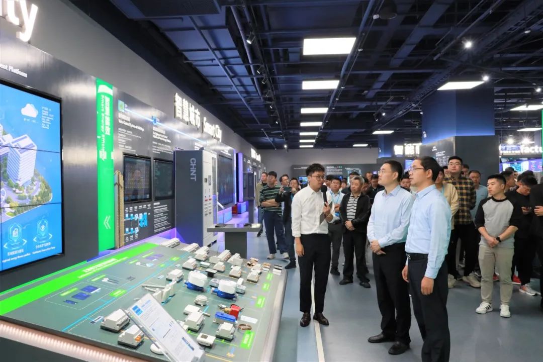 在创新体验中心,考察团一行详细了解正泰集团在绿色能源、智能电气、智慧低碳三大产业板块的发展布局,深入了解正泰数智化碳中和解决方案的前沿探索,对正泰绿色能源板块发展及正泰集团在电力能源领域取得的最新创新成果表示认同。