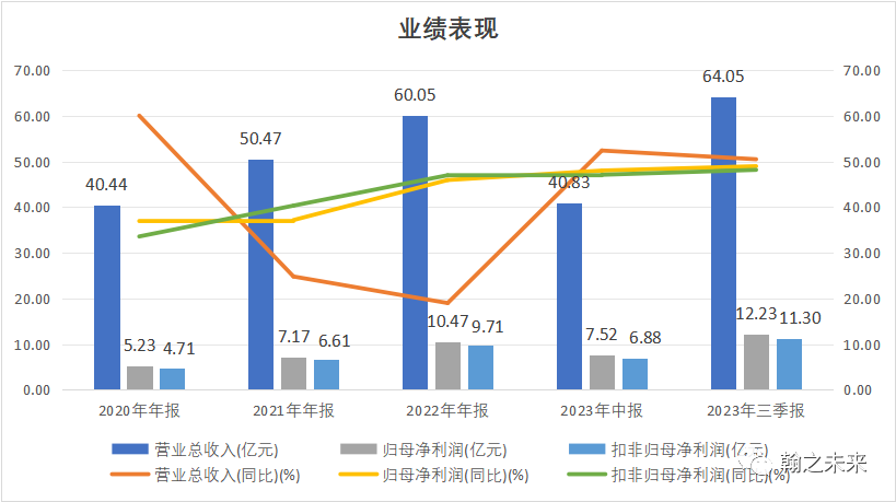 1、三季度业绩继续维持高速增长:第三季度营收23.22亿元,同比增长47.23%,归母净利润4.71亿元,同比增长50.51%,扣非归母净利润4.42亿元,同比增长49.88%;前三季度公司营收64.05亿元,同比增长50.48%,归母净利润12.23亿元,同比增长48.96%,扣非归母净利润11.30亿元,同比增长48.16%。