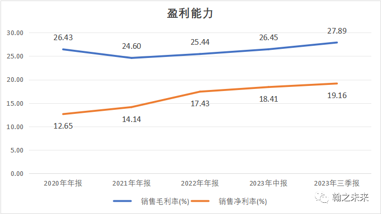 2、盈利能力不断提升:前三季度公司毛利率为27.89%,净利率为19.16%。其中第三季度毛利率30.43%,同比增加了4.99个pct,环比也增加了0.68个pct;净利率20.49%,同比增长了0.67个pct,环比也增长了1.19个pct。