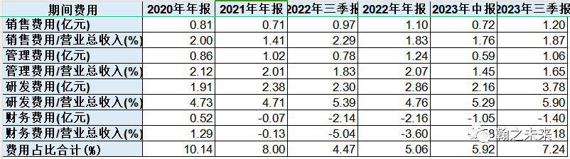 3、期间费用率方面,前三季度合计为7.24%,同比增加了2.77个pct:其中销售费用率为1.87%,同比降低了0.42个pct;管理费用率为1.65%,同比下降了0.18个pct,研发费用率为5.90%,同比增加了0.51个pct;财务费用率为-2.18%,同比增加了2.86个pct。研发费用与财务费用增加主要系研发投入加大与汇兑收益减少所致。