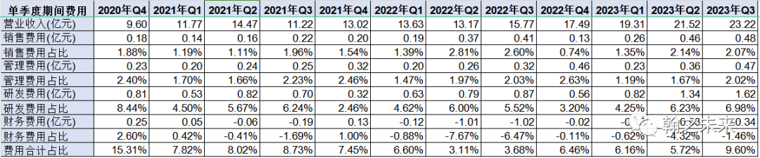 从单季度来看,期间费用增加主要是二三季度,其中第三季度增幅较多,同比增加了5.92个pct。