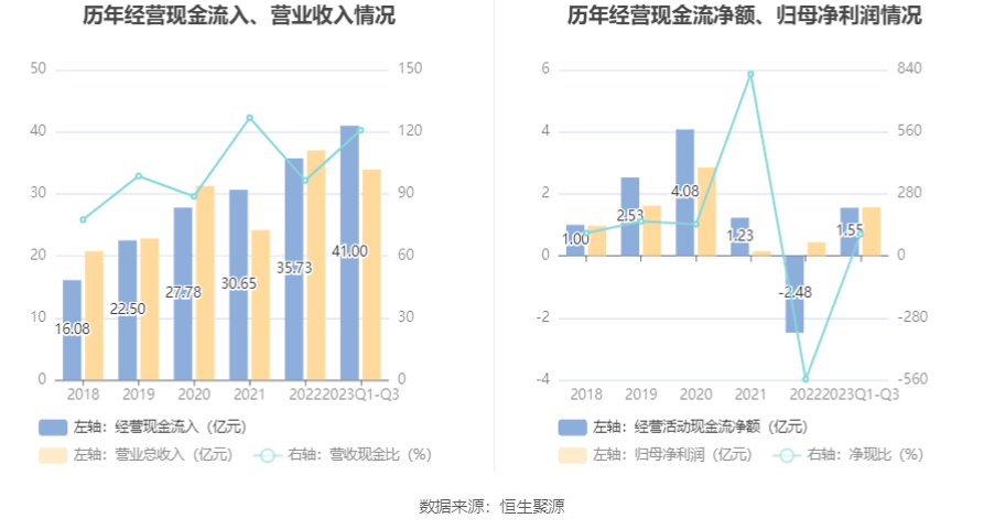2023年前三季度,公司营业收入现金比为120.84%,净现比为98.68%。