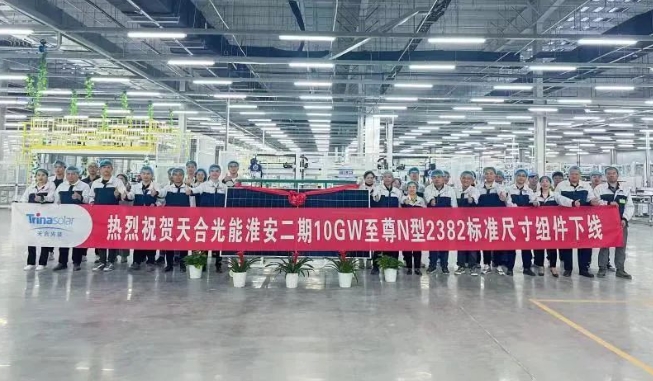 10月中旬,天合光能淮安基地二期10GW至尊N型2382标准尺寸组件和10GW N型i-TOPCon电池成功下线,先进的N型电池、组件产能加速落地,以满足N型时代高功率及超高功率组件日益增长的需求。预计今年年底,天合光能将形成N型硅片产能50GW、组件产能95GW、电池产能75GW,其中N型电池产能40GW,全部使用新一代N型i-TOPCon先进技术,一体化N型产能保障至尊N型组件无忧交付。